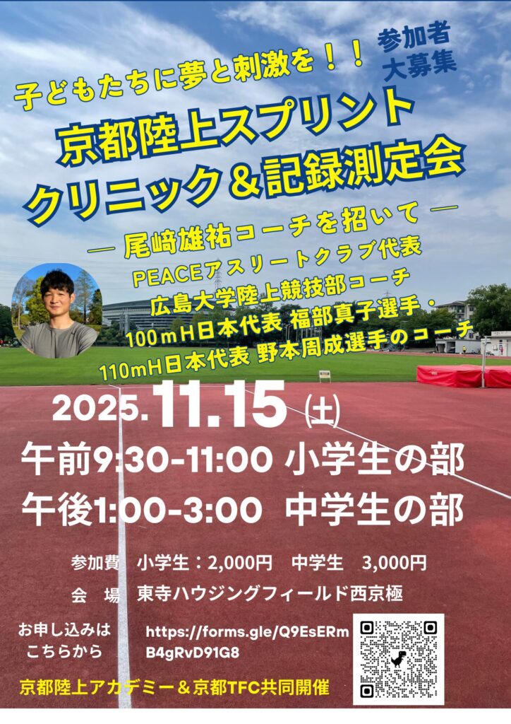 本イベントは、京都陸上アカデミーと京都TFCの共同開催による特別プログラムです。